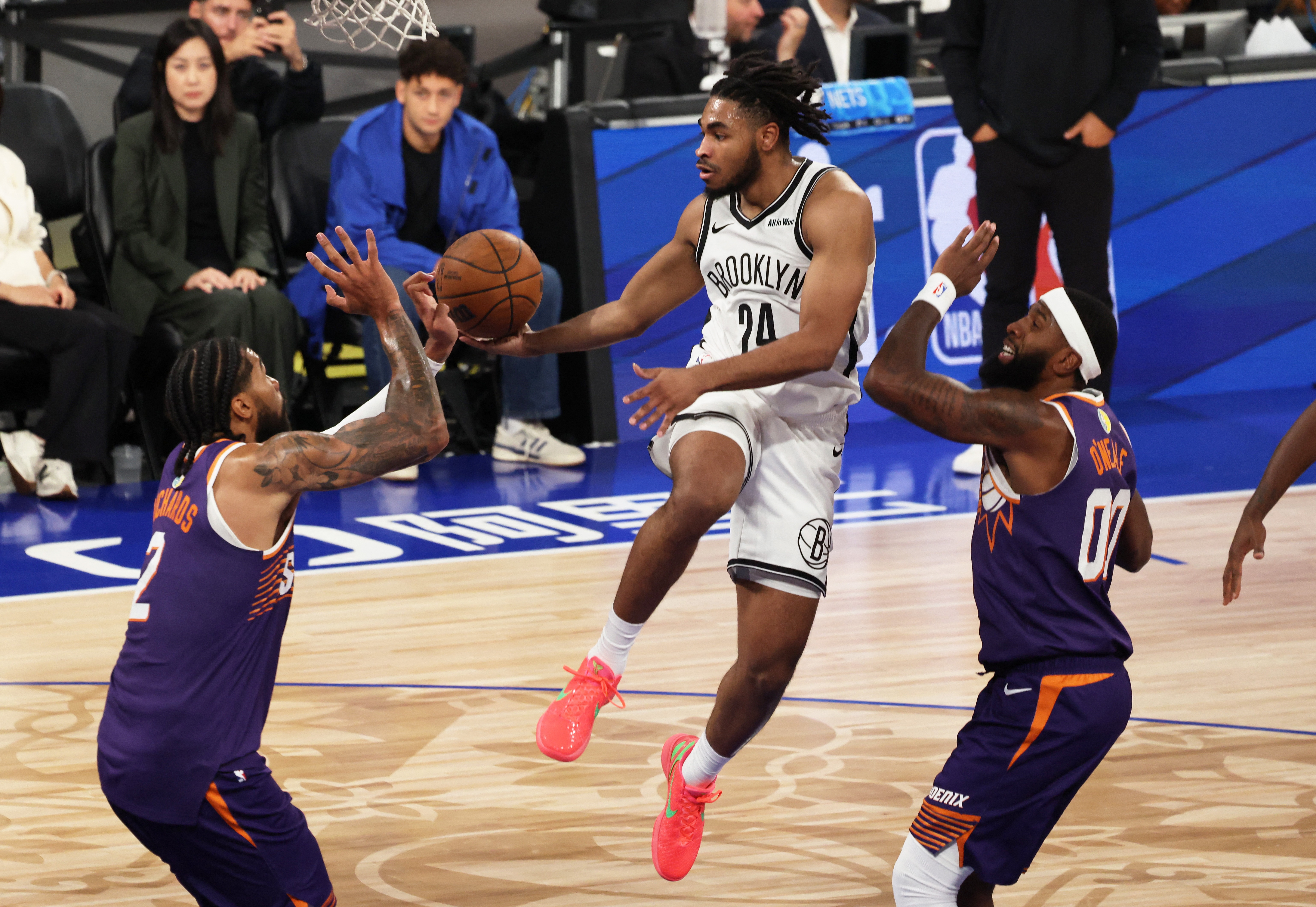 10月12日讯 NBA季前赛,篮网半场49-51落后太阳。上半场比赛,篮网球员卡梅隆-托马斯在遭遇对手严防的情况下,进攻端依旧稳定表现,多次贡献高难度进球。他出战18分钟,投篮7中4,罚球8中7,拿到15分4篮板1盖帽的数据。