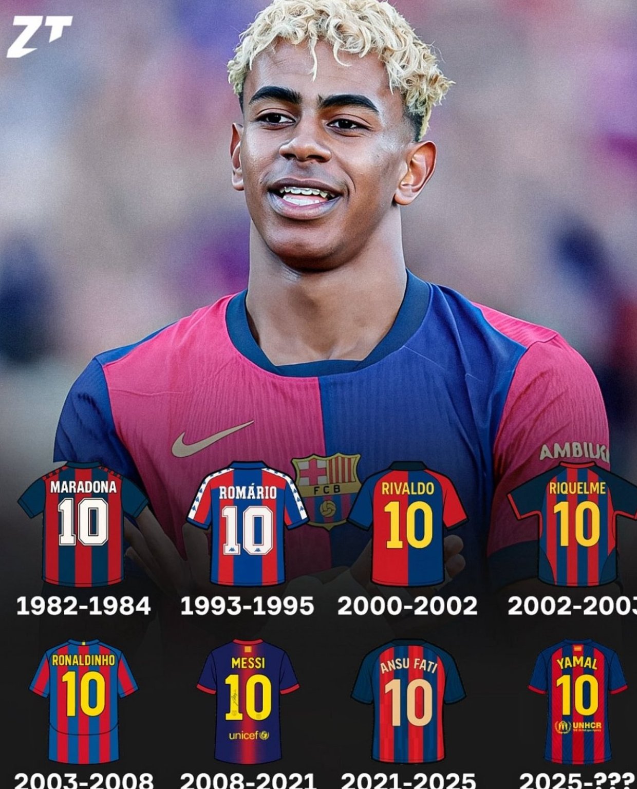 接过传奇10号跟队记者:巴萨7月1日正式官宣17岁亚马尔穿10号