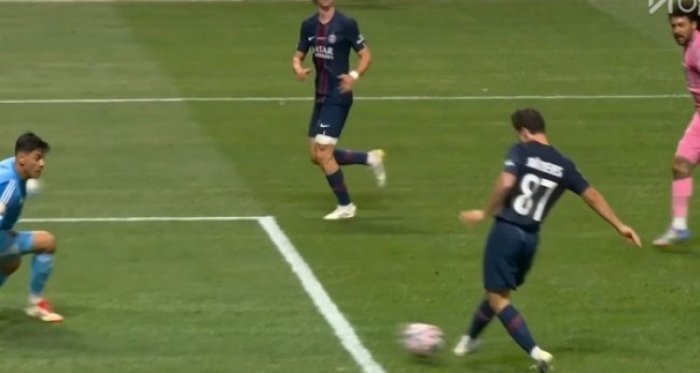 杜埃造阿维莱斯乌龙!第45分钟,杜埃右路下底传中,皮球打在阿维莱斯身上折射,随后飞进自家大门,巴黎圣日耳曼3-0迈阿密国际!↓