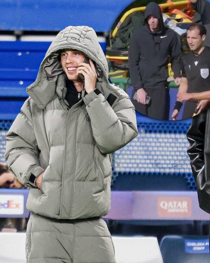 联赛阶段切尔西1-0击败本菲卡,帕尔默现身斯坦福桥球场,穿着大棉衣+棉鞋看比赛。